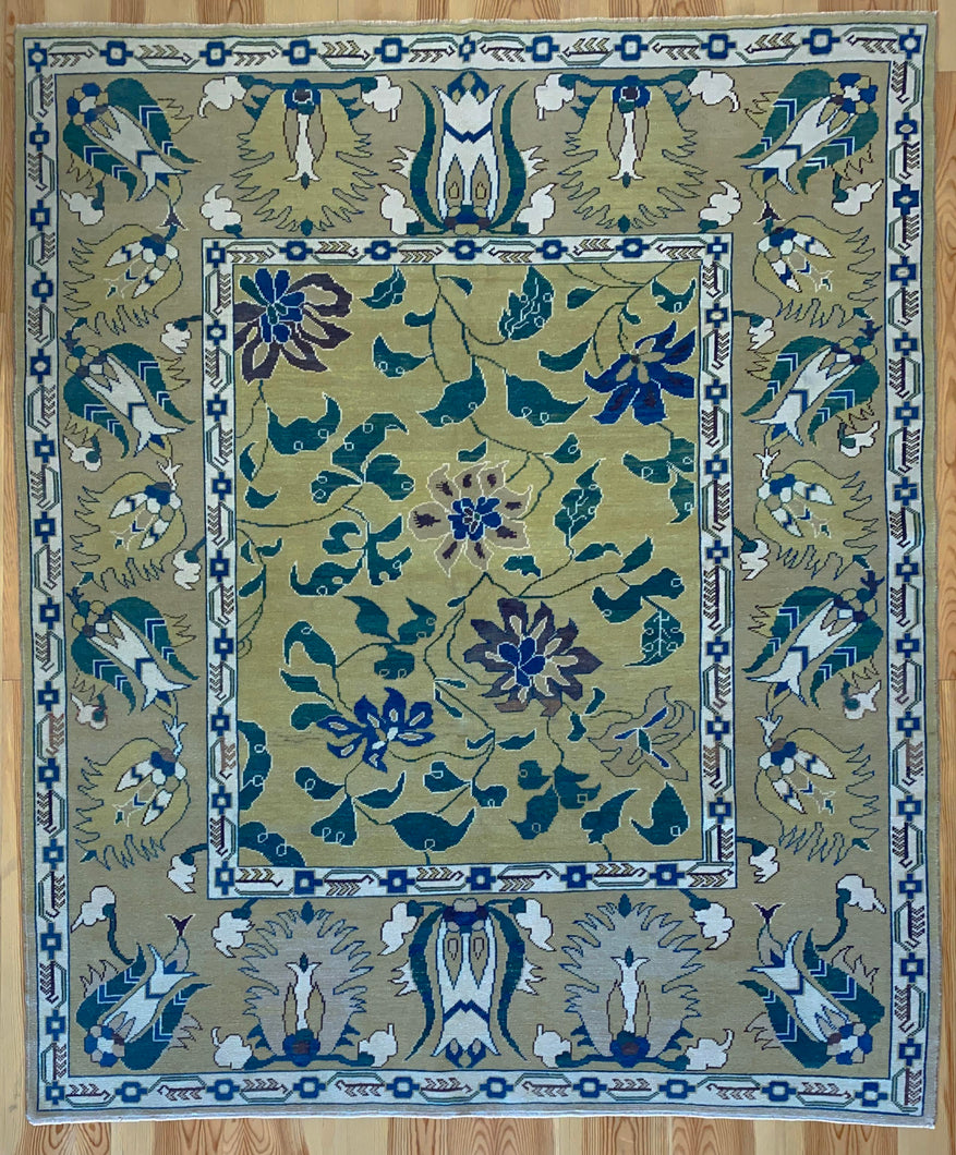 7x8 Vintage Western Anatolian 'Oushak' Turkish Area Rug | Floral Design Broad Border Vibrant Colors | SKU 622