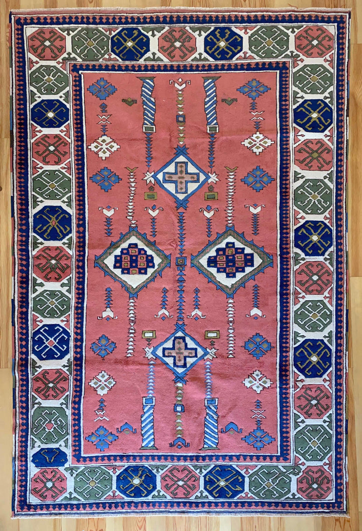 6x9 Vintage Central Anatolian 'Yoruk' Turkish Area Rug | Multiple Medallion Design on Light Field with Animal Motifs and Geometric Ornaments Geometric Border | SKU 631