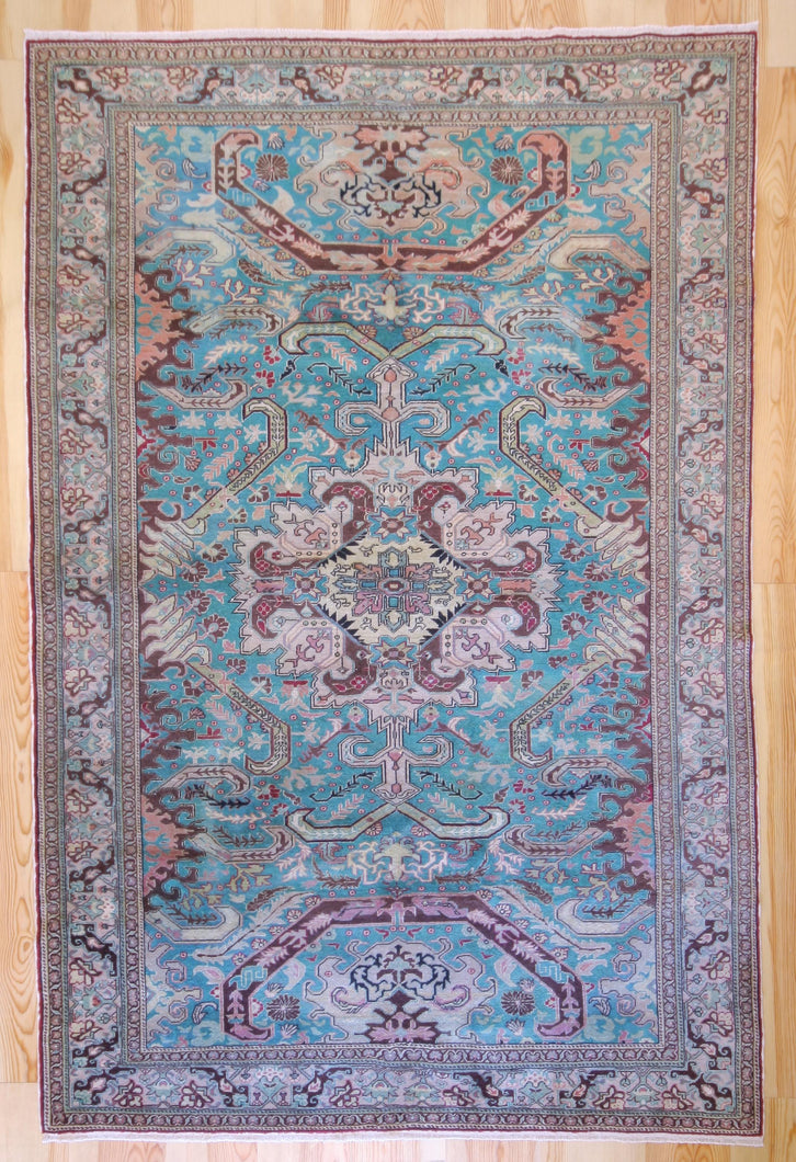 6x10 Vintage Central Anatolian 'Kayseri' Turkish Area Rug Bold Medallion Green Field Geometric 'Adler' Design | SKU 546