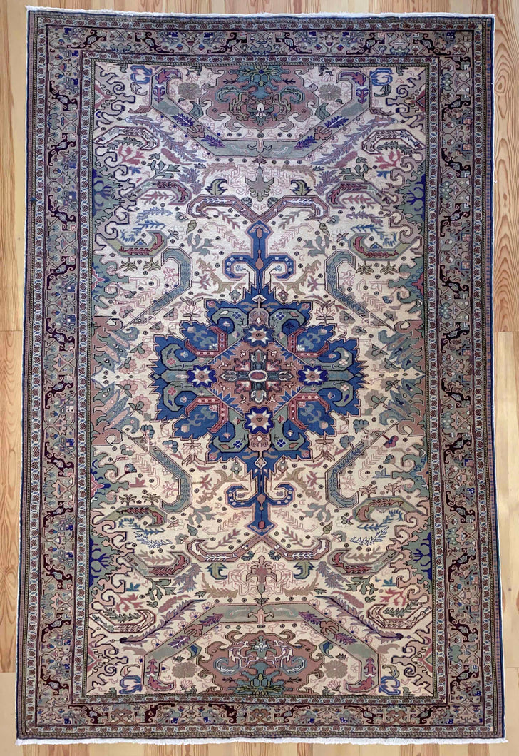 6x9 Vintage Central Anatolian 'Ladik' Turkish Area Rug Bold Intricate Medallion Spacious Bright Field Floral Design | SKU 560