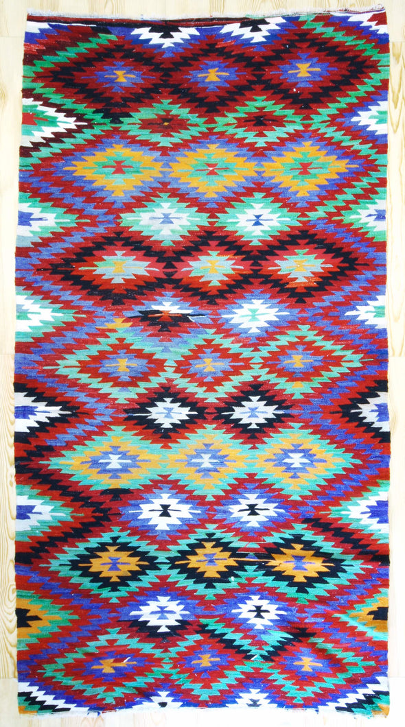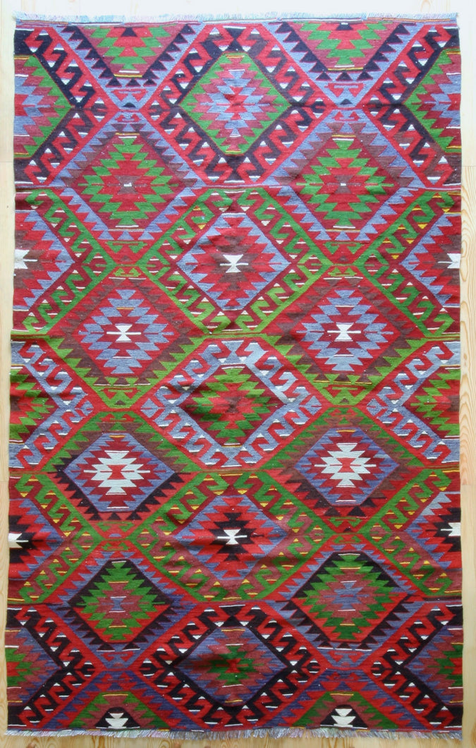 5x10 Vintage Anatolian Turkish Kilim Area Rug | Repeating Symmetrical Motifs Bold Colors | SKU 295
