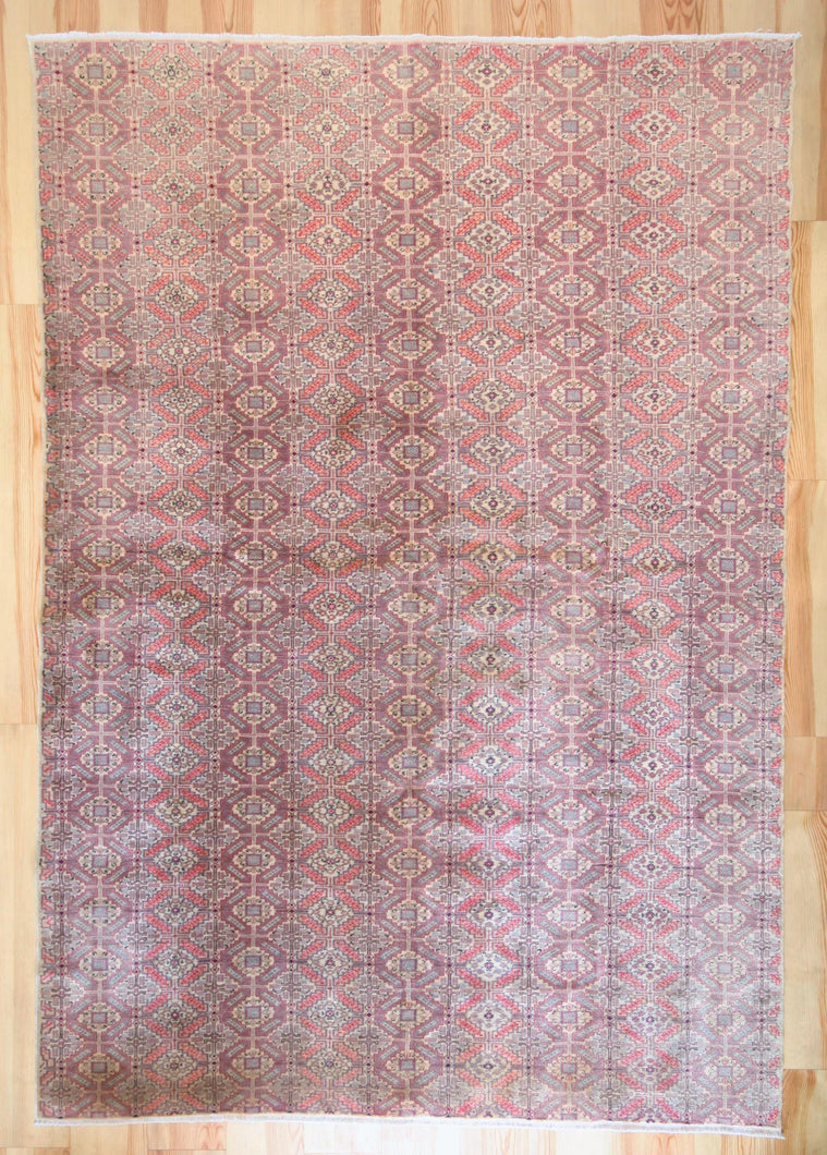 6x10 Vintage Anatolian Turkish Kilim Area Rug | Interlocked pink gray geometric tribal symbols | SKU 409
