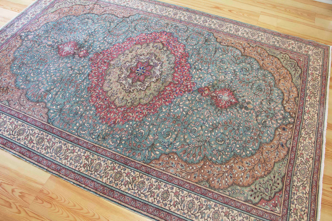 7x10 Vintage Central Anatolian Oushak Style Turkish Area Rug | Bold medallion spacious field floral border | SKU 496
