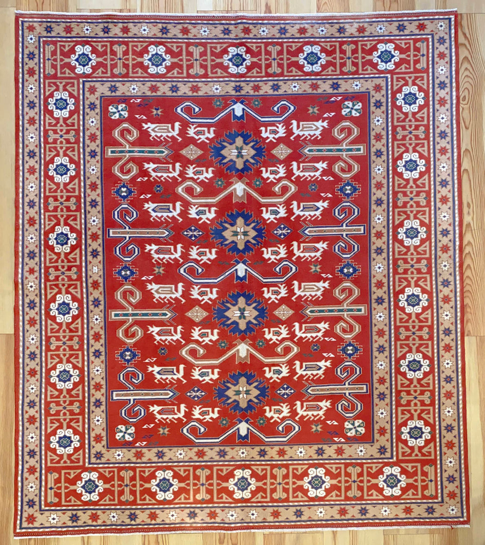 4x7 Vintage Central Anatolian Caucasian Akstafa Design 'Aksaray' Turkish Area Rug | Triple Star Medallion Geometric Colorful Design Spacious Field Bird Motifs Geometric Border | SKU 617