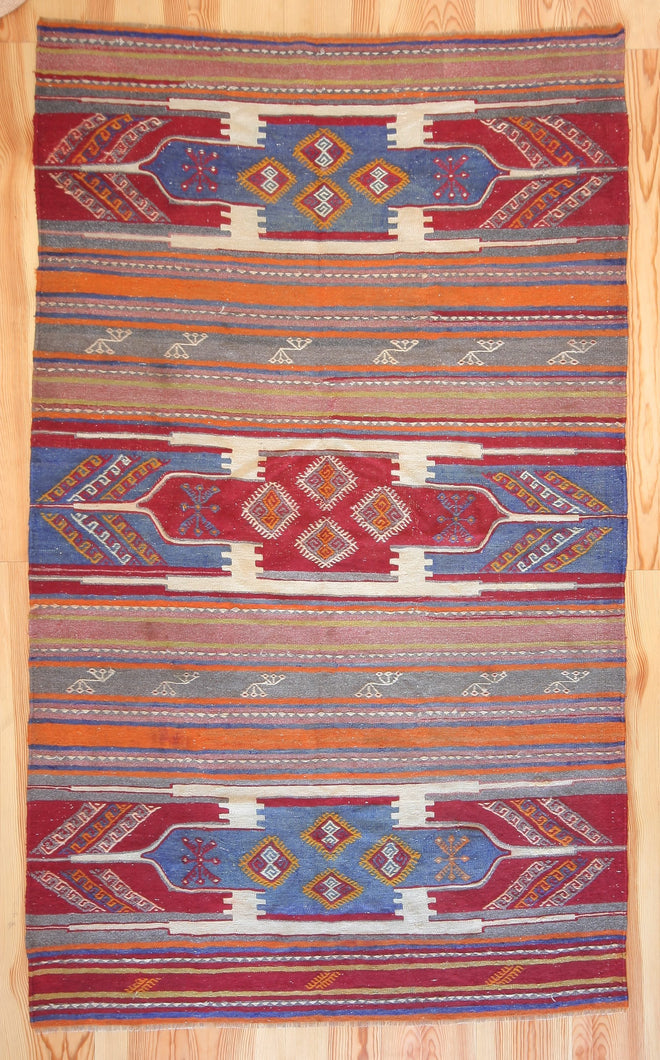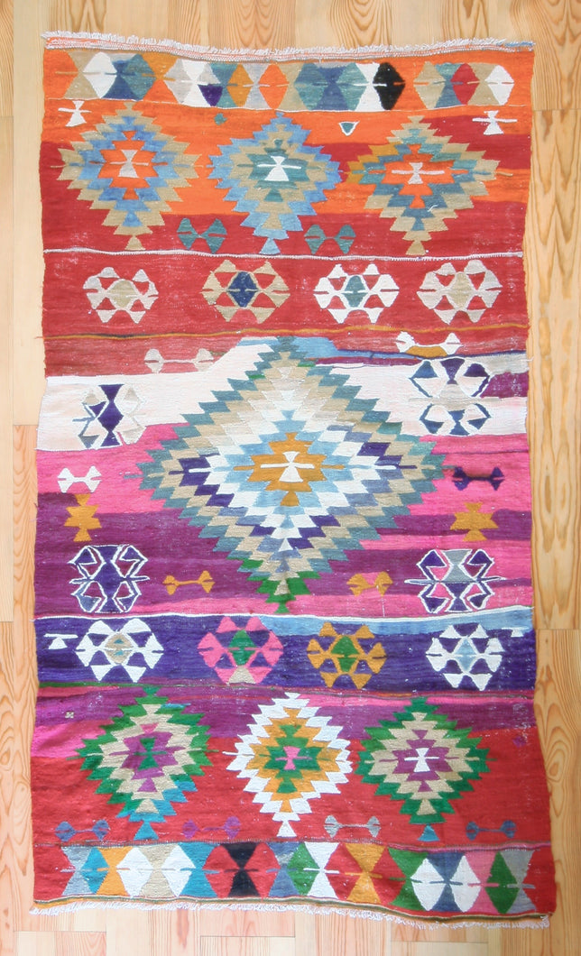 5x9 Vintage Eastern Anatolian 'Sivas' Turkish Kilim Area Rug | Triple horizontal medallion with colorful stripes | SKU 495
