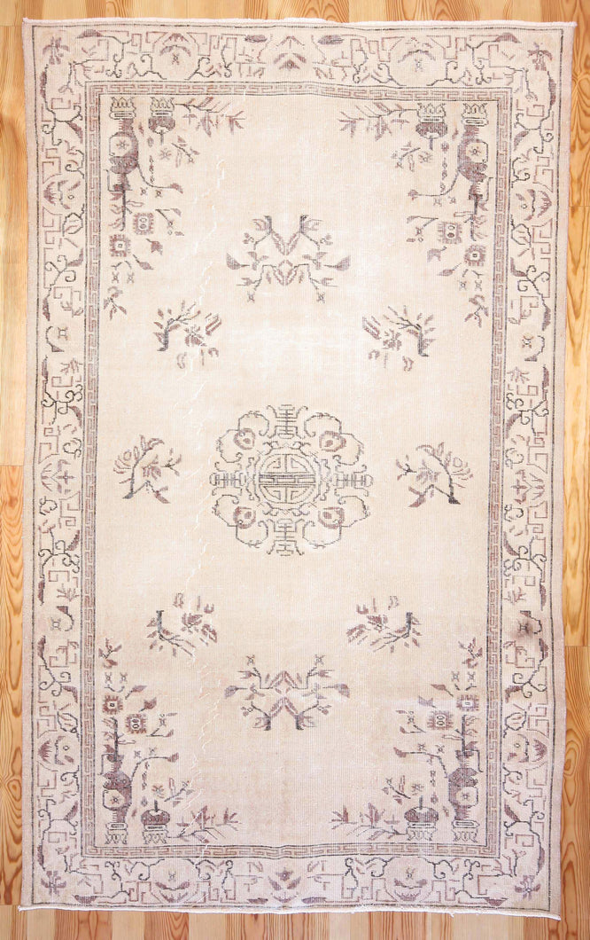 6x9 Vintage Central Anatolian Oushak Style Turkish Area Rug | Geometric medallion spacious field muted colors | SKU 499