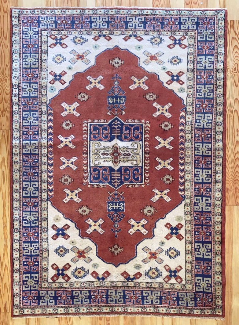 4x7 Vintage Central Anatolian 'Yoruk' Turkish Area Rug | Medallion design on warm field, geometric border | SKU 330
